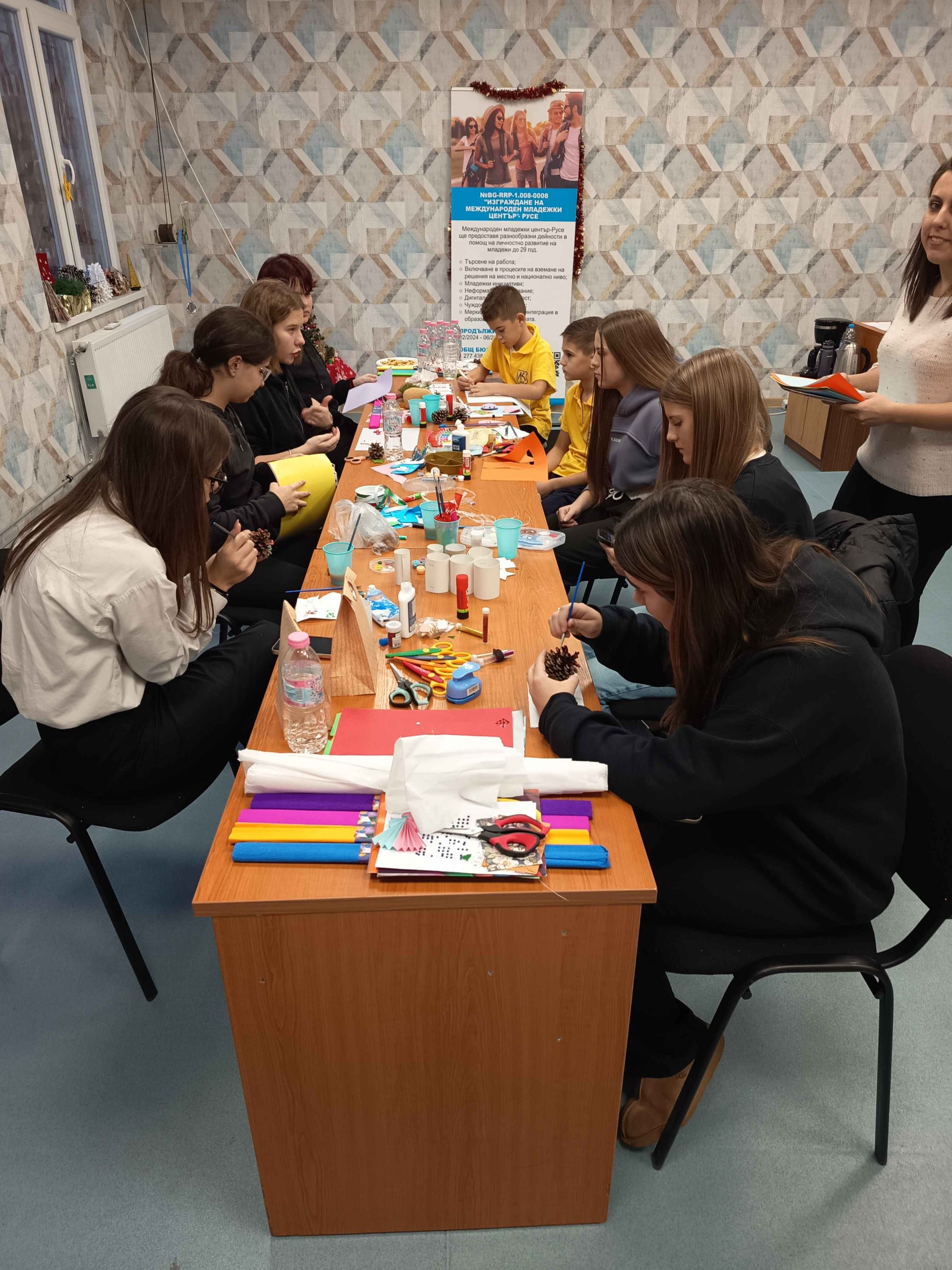 В празнична атмосфера, изпълнена с коледни песни и настроение, младежи от града се събраха, за да творят и да дарят времето си за благородна кауза. С помощта на нашите доброволци, участниците създадоха десетки ръчно изработени коледни картички и оригинална украса.